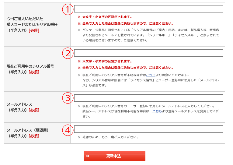 ※おそらく、前回、ユーザ登録した時にメールが送られてきているはずですのでそれを入力。